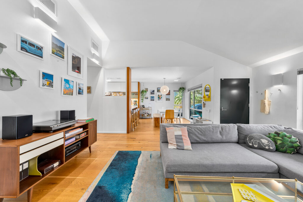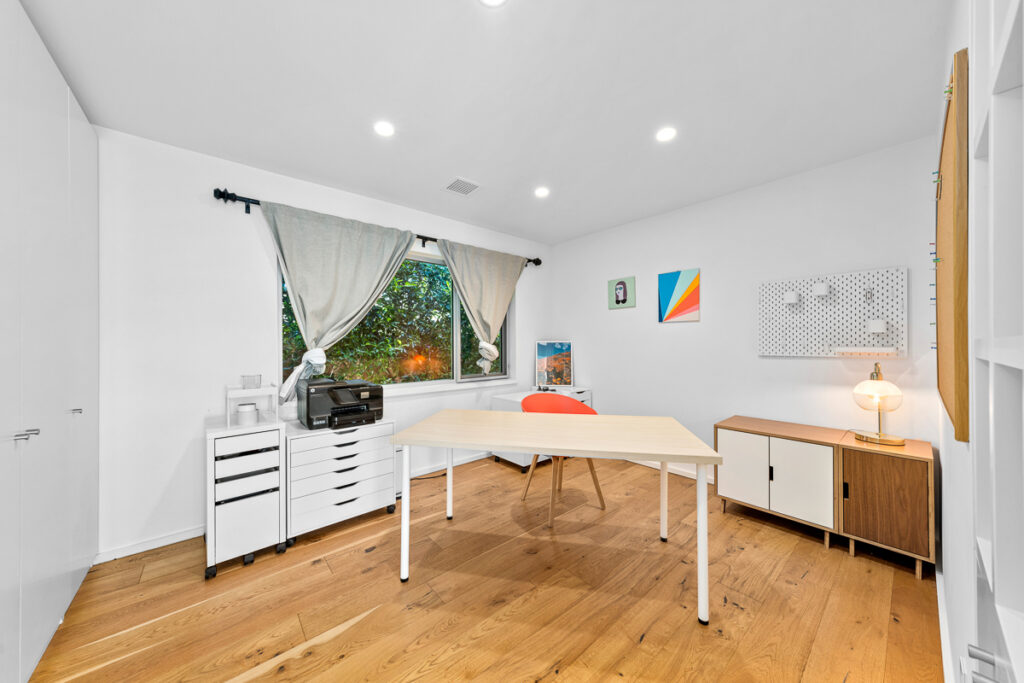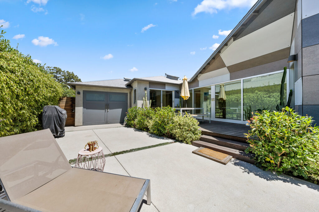 Using a lot of natural materials with raw edges, plywood with exposed edges, and alternating painted fiber cement panels all lead to a harmony of a spectacular design. There is a small studio, a one-car garage, and a long carport with amazing landscaping that make this home a MUST see.